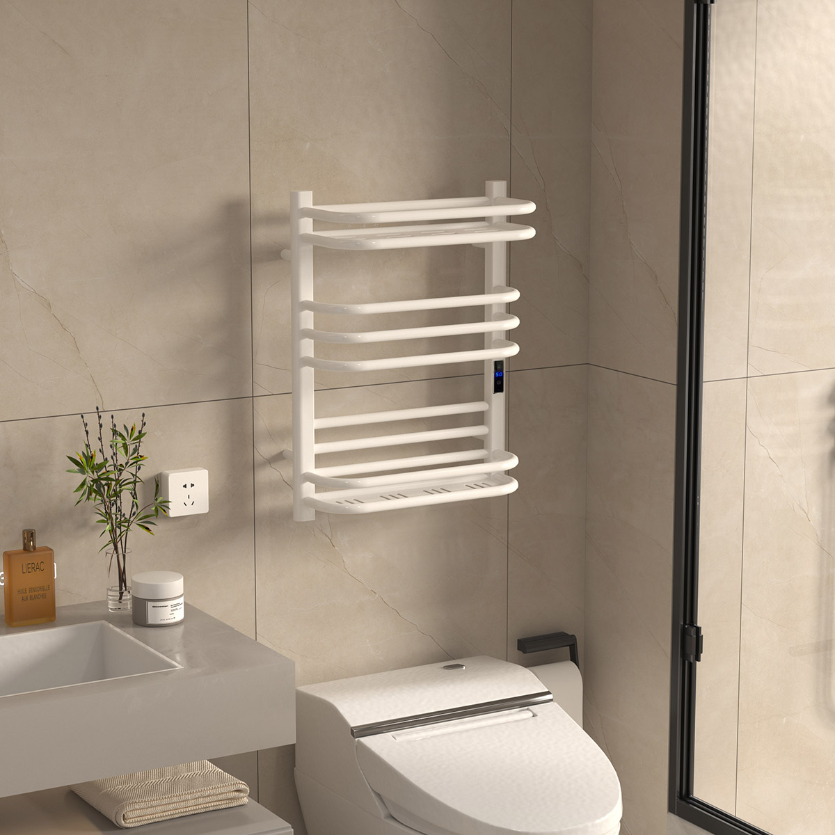 13桿時控開關(guān)電熱毛巾架 13 bar time switch heated towel rai 材質(zhì)Material:Mild Steel 低碳鋼 功率Power:220V/240W 表面Surface:White Painted 白色噴塑 尺寸Size:490*265*650mm 包裝Ctn size:560*260*710mm