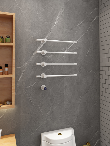 單桿預埋觸屏開關電熱毛巾架 Single lever embedded touch screen switch heated towel rack 材質(zhì)Material:SS201/SS304 功率Power:220V/75W 表面Surface:White Painted 白色噴塑 尺寸Size:590*85*648mm 包裝Ctn size:940*110*440mm