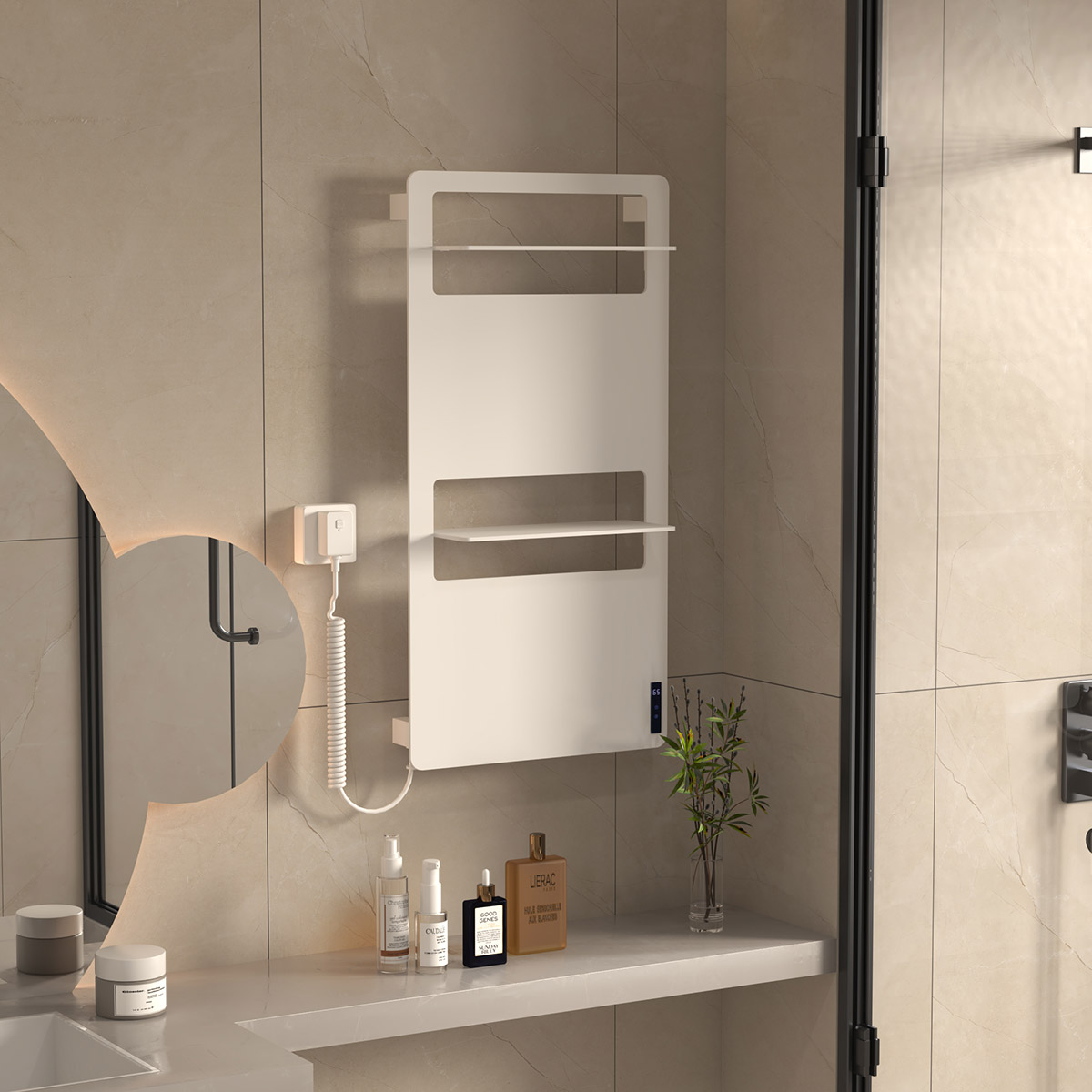 板式液顯多功能開關(guān)電熱毛巾架 Panel LCD display multifunction switch heated towel rail 材質(zhì)Material:Aluminum 鋁 功率Power:220V/180W 表面Surface:White Painted 白色噴塑 尺寸Size:450*80*880mm 包裝Ctn size:500*80*930mm